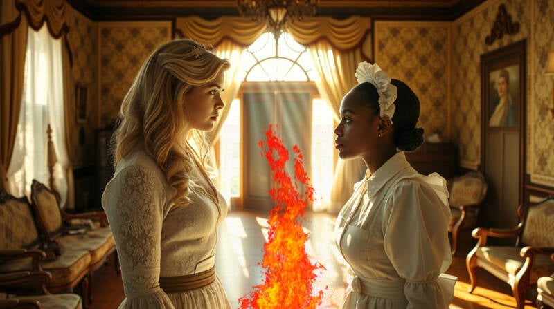 Es war kurz vor Mittag gewesen, als ich Rosalynn dabei erwischte, wie sie aus meinem Wäscheschrank einen meiner seidenen Unterröcke entwendete. Sie war mir aufgefallen, als sie sich aus der Küche in das obere Stockwerk schlich, in dem mein Ankleidezimmer lag. Hier hatte sie überhaupt nichts zu suchen, denn sie war für die Küche und das Auftragen der Speisen und die sonstige Bedienung zuständig.